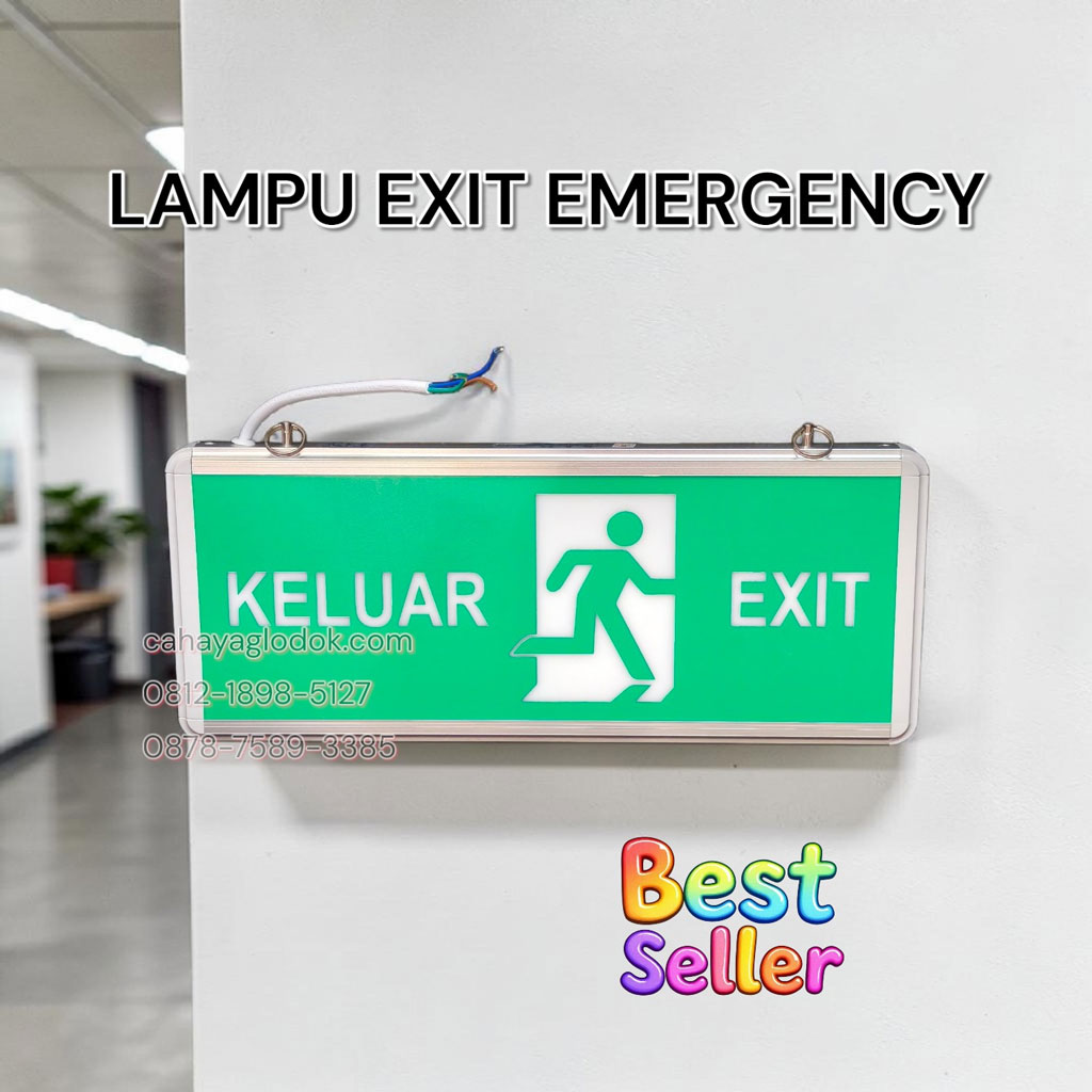 Lampu emergency exit ini memenuhi standar keamanan kebakaran Indonesia. Warna hijau terang sesuai regulasi internasional untuk tanda evakuasi. Material anti-api dan tahan panas menjadikannya aman untuk penggunaan jangka panjang.